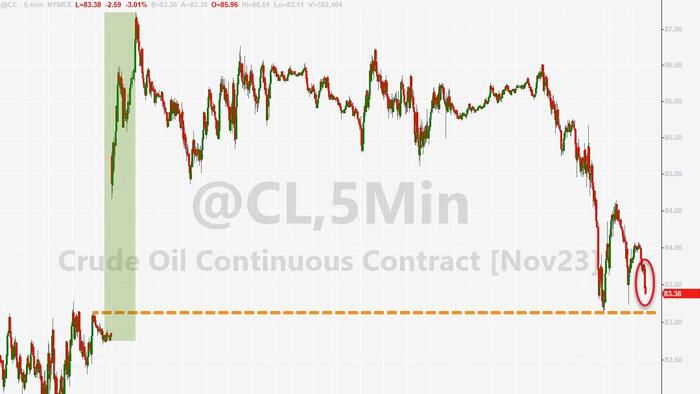 WTI Extends Losses After API Reports Massive Crude Inventory Build | ZeroHedge