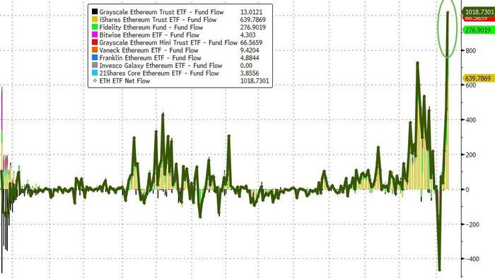 Ether ETFs See Record $1 Billion Inflows As ETH Flashes Bull Signals | ZeroHedge