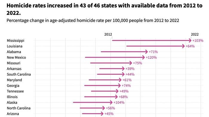 How Homicide Rates Have Changed Since 2012 By US State | ZeroHedge