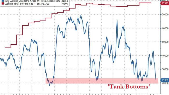 WTI Extends Gains As Cushing Stocks Near 'Tank Bottoms'; SPR Drained | ZeroHedge