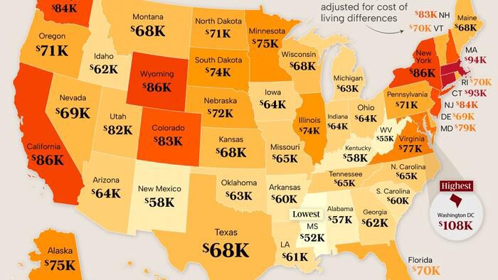 Southern States Have The Lowest Average Incomes, DC The Highest | ZeroHedge