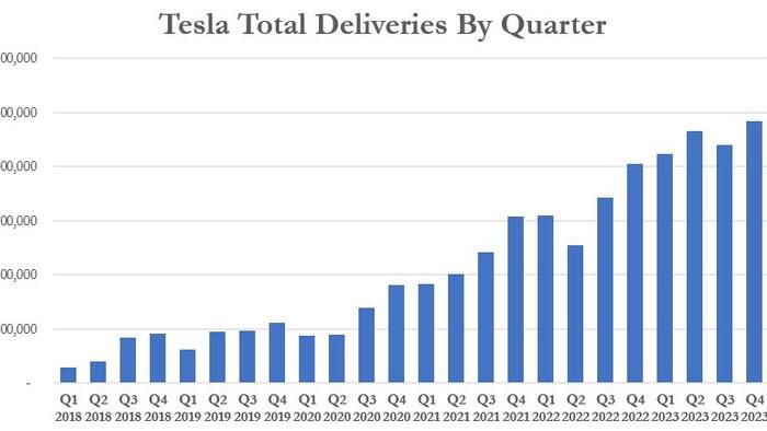 Tesla Delivers Record Q4 Deliveries But Falls Short Of 2 Million 2023 Delivery Goal | ZeroHedge