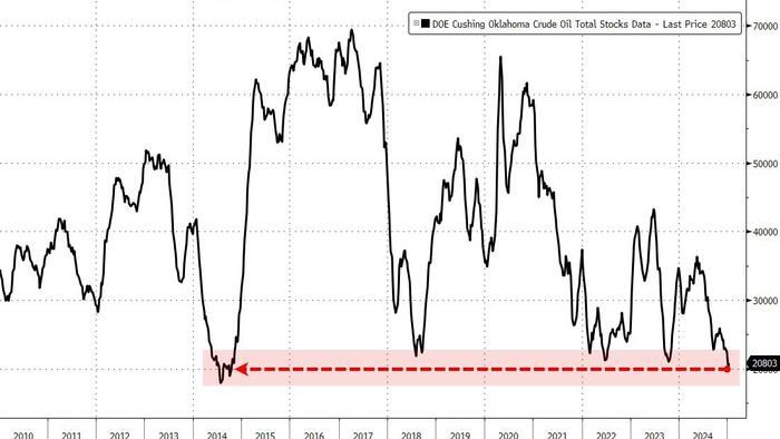 WTI Holds Gains As 'Tank Bottoms' Loom At Cushing Hub; Crude Stocks Drop For 8th Straight Week | ZeroHedge