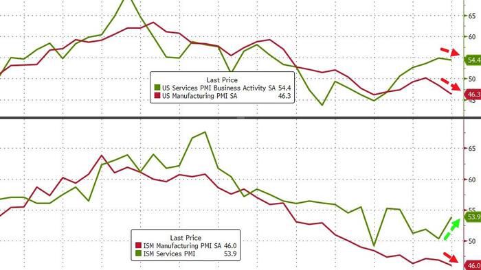 US Services Sector Surveys FUBAR: PMI "Cost Pressures Picked Up" & ISM Prices Lowest Since March 2020 | ZeroHedge