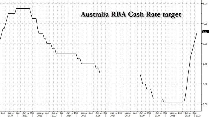 Aussie Slides After RBA Hikes Rates For 10th Consecutive Time, Says Inflation Has Likely Peaked | ZeroHedge